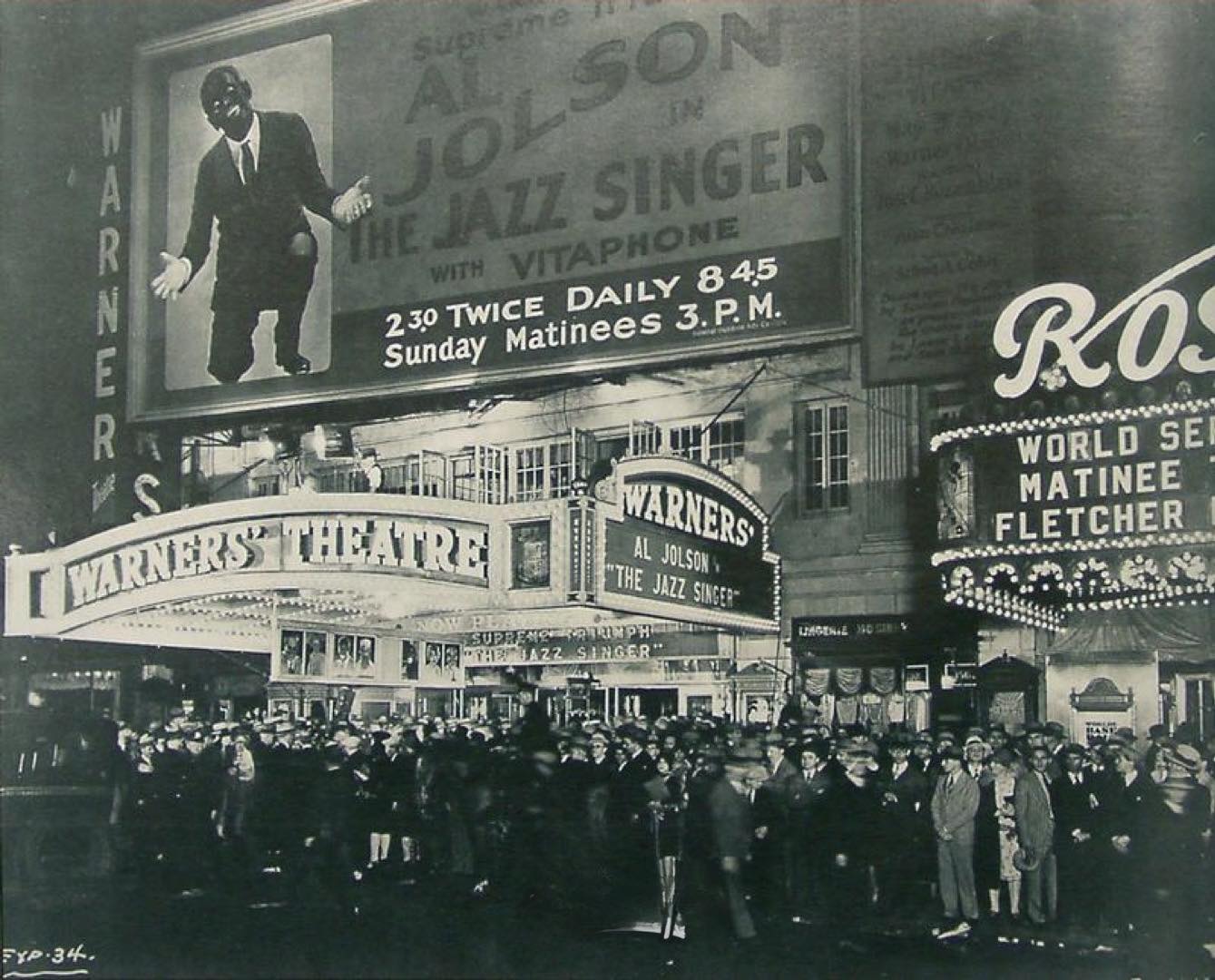 Le premier long-métrage non muet de l’histoire, The Jazz Singer, est sorti le 6 octobre 1927 à New York. Attention, le film est encore en grande partie muet, l’histoire y est encore racontée à l’aide de cartons et de sous-titres. La bande sonore comporte tout juste 281 mots parlés et six chansons.