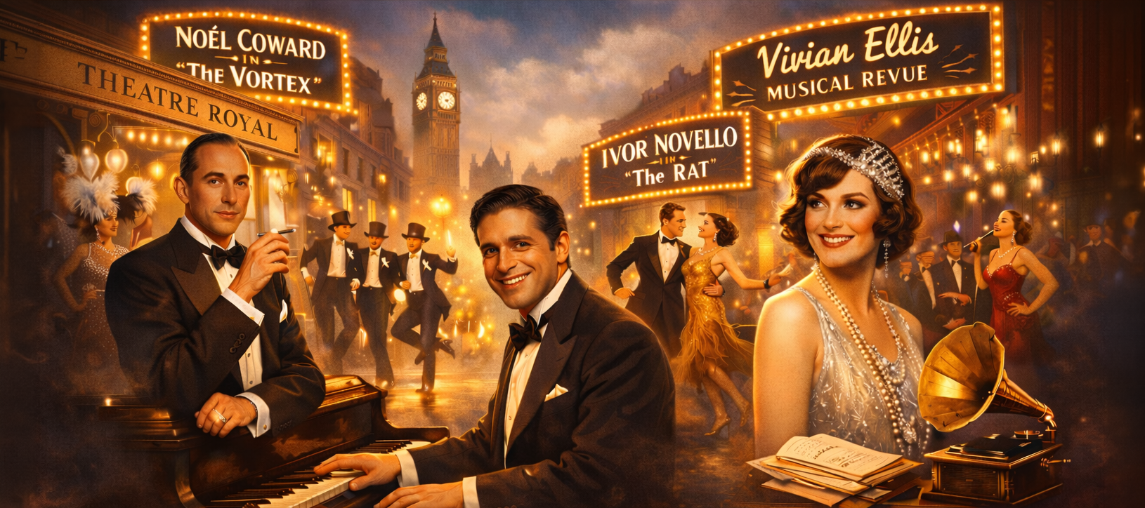 Star romantique du théâtre et du cinéma muet, compositeur adulé (Keep the Home Fires Burning), Novello conquiert le West End avec des musicals luxuriants à grand renfort de mélodies lyriques et de décors somptueux (Glamorous Night, The Dancing Years, Perchance to Dream). Ses spectacles, montés avec faste, font les beaux jours du West End pendant plus de deux décennies. Novello incarne une élégance à l’anglaise, aristocratique et mélodieuse, à laquelle le public britannique reste profondément attaché.