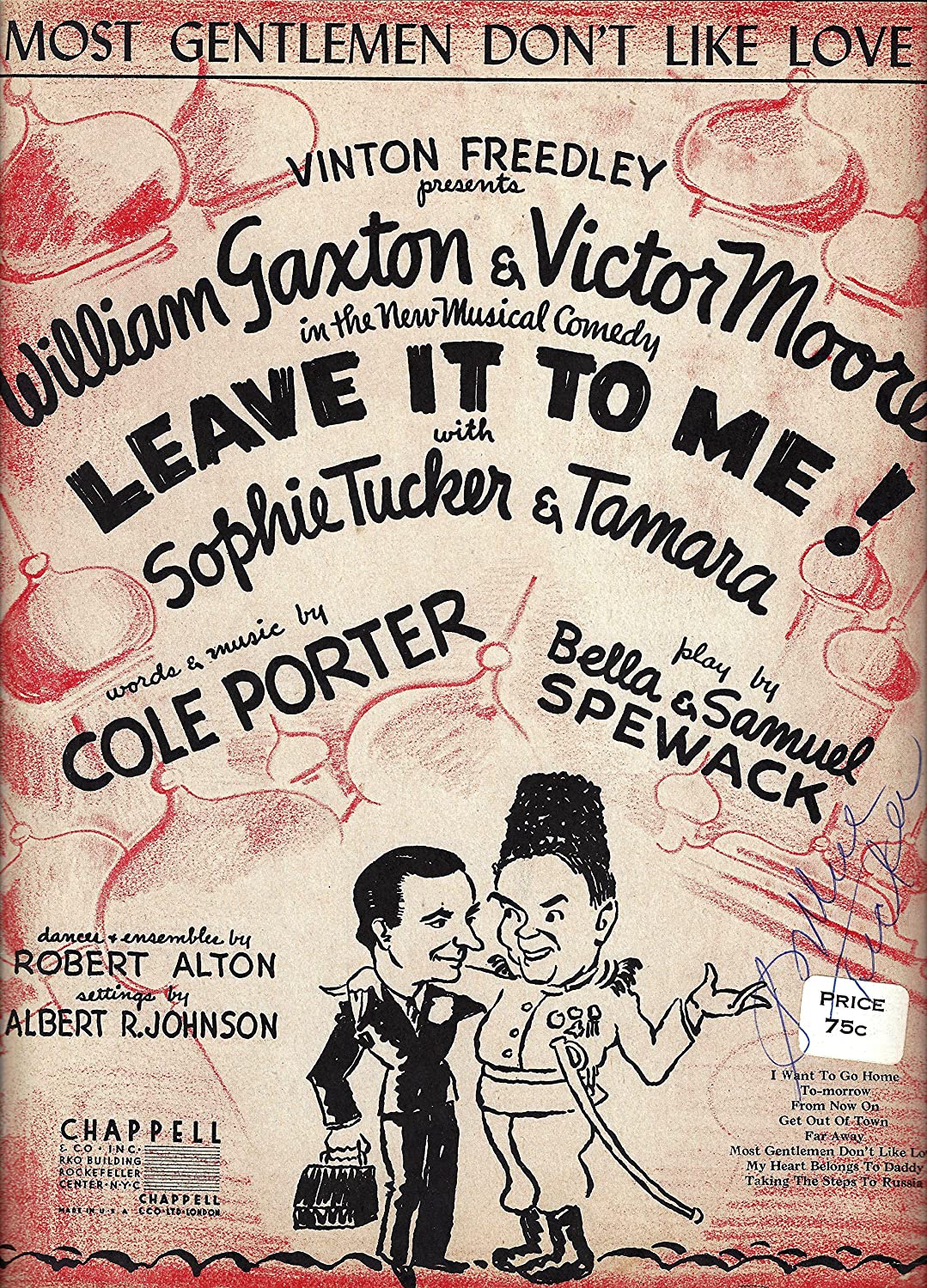 My Heart Belongs to Daddy – chanson immortalisée plus tard par Marilyn Monroe – est devenu le hit du spectacle. Elle était chantée ici par la jeune et débutante Mary Martin. Cette dernière ronronnait les paroles grivoises de la chanson et simulait un strip-tease. Elle a mis en lumière tout le talent de Mary Martin. Au début, elle ne figurait pas dans la liste des vedettes, mais son nom a rapidement trouvé sa place sur la page-titre du programme où elle a été placée en cinquième position juste après Gaxton, Moore, Tucker et Tamara. La partition incluait également un «avertissement sensuel» de Tamara avec Get Out of Town, la deuxième chanson la plus connue du musical; les ballades charmantes et discrètes de Tamara et Gaxton Far, Far Away et From Now On; sans oublier Most Gentlemen Don’t Like Love et Tomorrow interprétées par Sophie Tucker. Elle chantait aussi I’m Taking the Steps to Russia, dans laquelle elle promet d’apprendre des pas de danse sur de la musique de swing aux camarades soviétiques (elle mettra des «fourmis rouges» dans leur pantalon et introduira des «brand-new trickies» aux «Bolshevikies» parce que «Communithm» a besoin de «rhythm»). Cela ne s’invente pas…