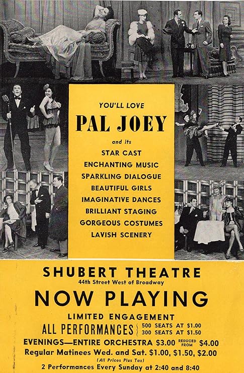 L’une des rumeurs persistantes du théâtre musical est que la production originale de Pal Joey () à Broadway en 1940 aurait été un échec, que personne n’aurait apprécié ce spectacle jusqu’au revival à Broadway, en 1952. Rien n’est plus faux. Lorsque le musical ferma en 1941, il était la deuxième plus longue série de tous les musicals de Rodgers et Hart, avec une série de 374 représentations.