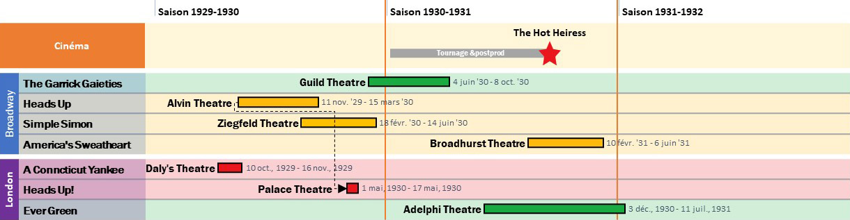 Le spectacle étant postposé, Rodgers et Hart n’avaient plus rien à faire à Londres et repartirent aux États-Unis. Ils avaient signé pour trois films avec Warner Bros. Le premier devait se tourner durant l’été 1930 et avait pour scénariste … Herb Fields, leur ancien librettiste. Ce film, The Hot Heiress (), sera un terrible flop, nous y reviendrons ci-dessous. Juste avant de partir de Londres, Dorothy Rodgers a consulté qu’elle était enceinte. Quelques mois plus tard naîtra Mary Rodgers…