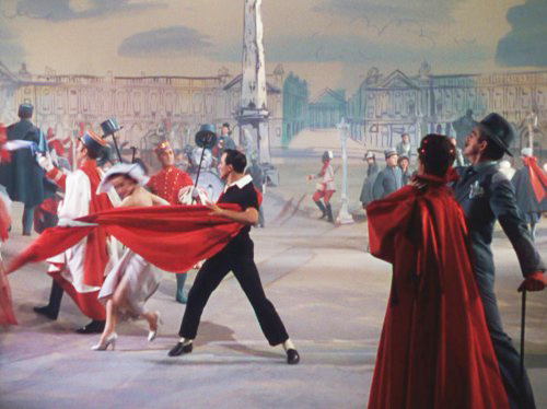 « Au début de la séquence Gene contemple Paris d’un balcon de Montmartre, son esprit est vide dépourvu de couleurs, telle dessin en noir et blanc qu’il a tracé sur le dos d’un programme. Des pensées confuses et des sentiments contradictoires assaillent son esprit, créant un kaléidoscope d’images, symboles d’espoir et de désespérance… Paris surgit devant lui, mais toute sa couleur a disparu. C’est une cité inconstante qui vous enchante, puis se rit de vous. Soudain, l’image se pare de couleurs éclatantes et l’esprit de la ville se fait de nouveau présent. À cet effet, nous avons utilisé deux dessins identiques – l’un en noir et blanc, et l’autre en couleurs – placés sous un angle tel qu’ils puissent se refléter dans le miroir noir central, notre point de tournage. Le dessin en noir et blanc était d’abord illuminé, puis apparaissait le dessin en couleurs – avec Gene de face – chaque fraction de couleur éclaboussant l’image pour restituer l’esprit de la cité. C’est un carnaval étrange et bruyant… »