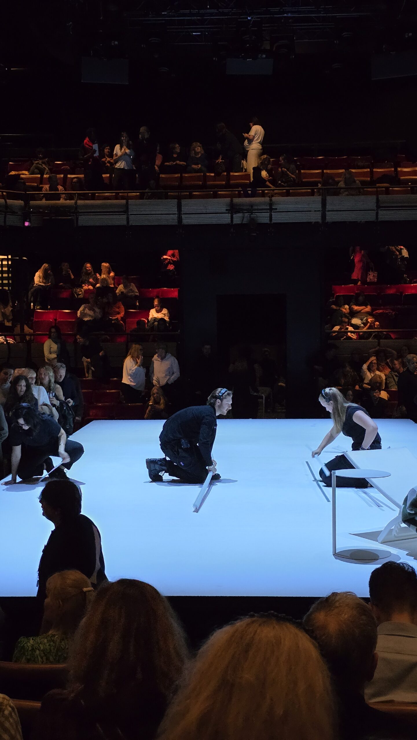 L’entracte survient assez tôt dans le déroulement de la pièce. Et durant cet entracte voici à quoi l’on peut assister si on ne va pas acheter à boire ou des friandises.