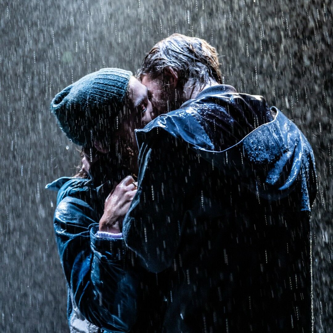 Après le déluge de la pluie, le niveau d’eau sur scène monte et se transforme en une pataugeoire, dans laquelle les personnages évoluent.