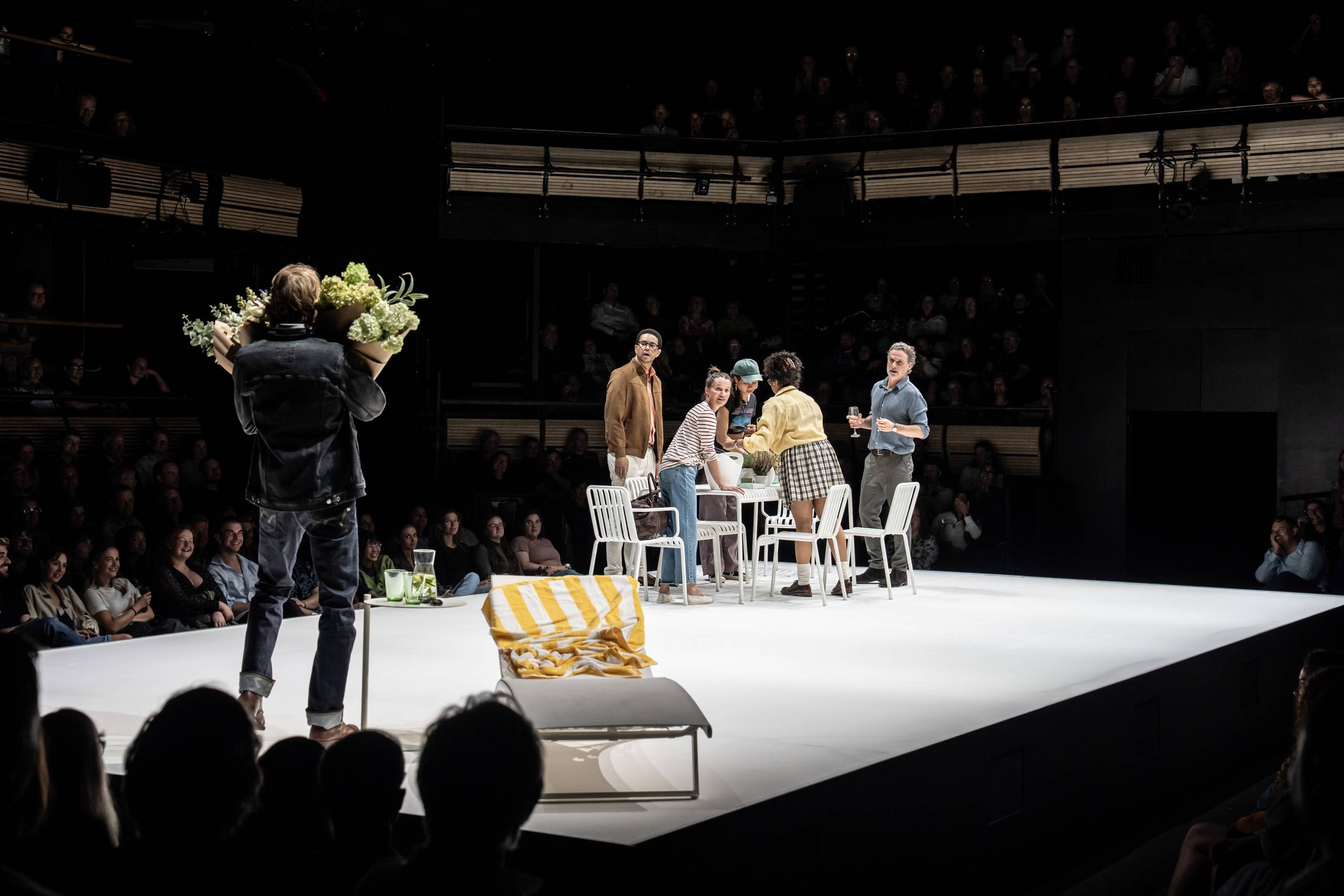 Au début du spectacle, la scénographie (signée Lizzie Clachan) plonge les spectateurs dans un décor très lumineux, presque clinique: sol blanc et mobilier blanc épuré. Tout respire l’ordre, la pureté, la transparence. Mais ce blanc est trompeur. Très vite, le spectateur comprend que c’est la blancheur d’une maison où tout est refoulé: les émotions, le passé, le désir, la peur de la perte. Le blanc devient la couleur de la façade bourgeoise – propre, apaisée, mais glaciale.