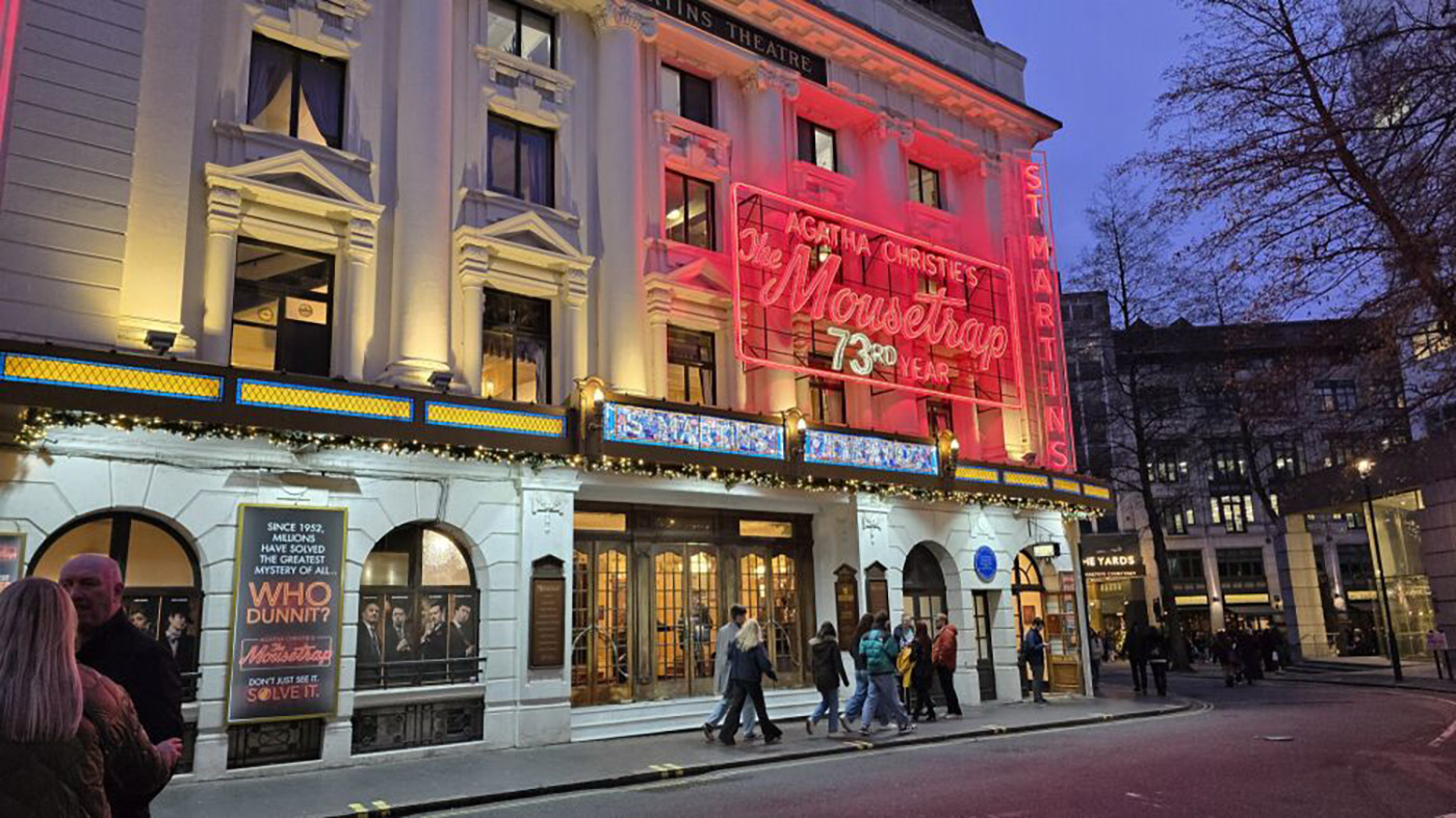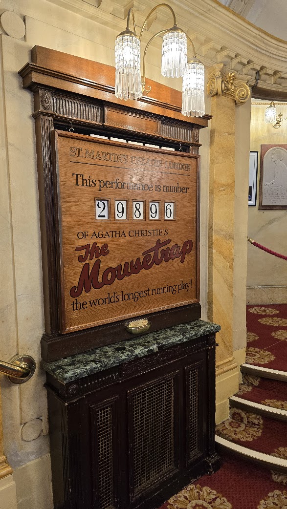 Et bien voilà un bien beau début de journée… Il faut qu’on sorte parce que, dans moins de deux heures, dans ce même théâtre se joue la 29.896ème représentation The Mousetrap d’Agatha Christie. Elle se joue depuis le 6 octobre 1952 soit 72 ans. Treize ans avant ma naissance!!!
