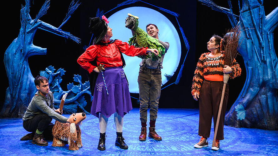 Le spectacle commence avec 4 campeurs qui aperçoivent, en pleine forêt, une sorcière volant sur un balai au-dessus de leur tête. En quelques instants, ils plantent le décor de ce qui promet d’être une aventure magique. Ils nous emmènent aussi du monde réel au monde imaginaire.