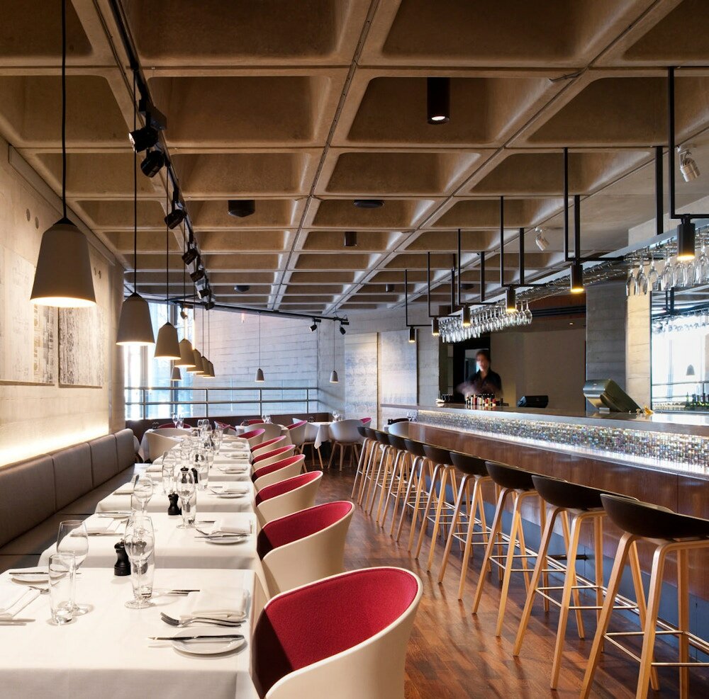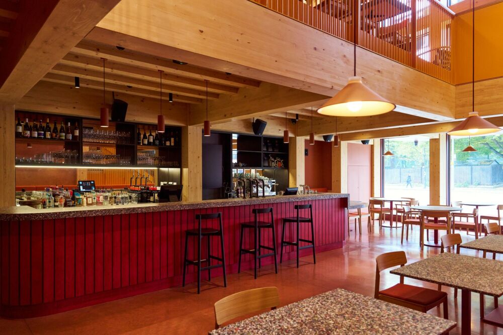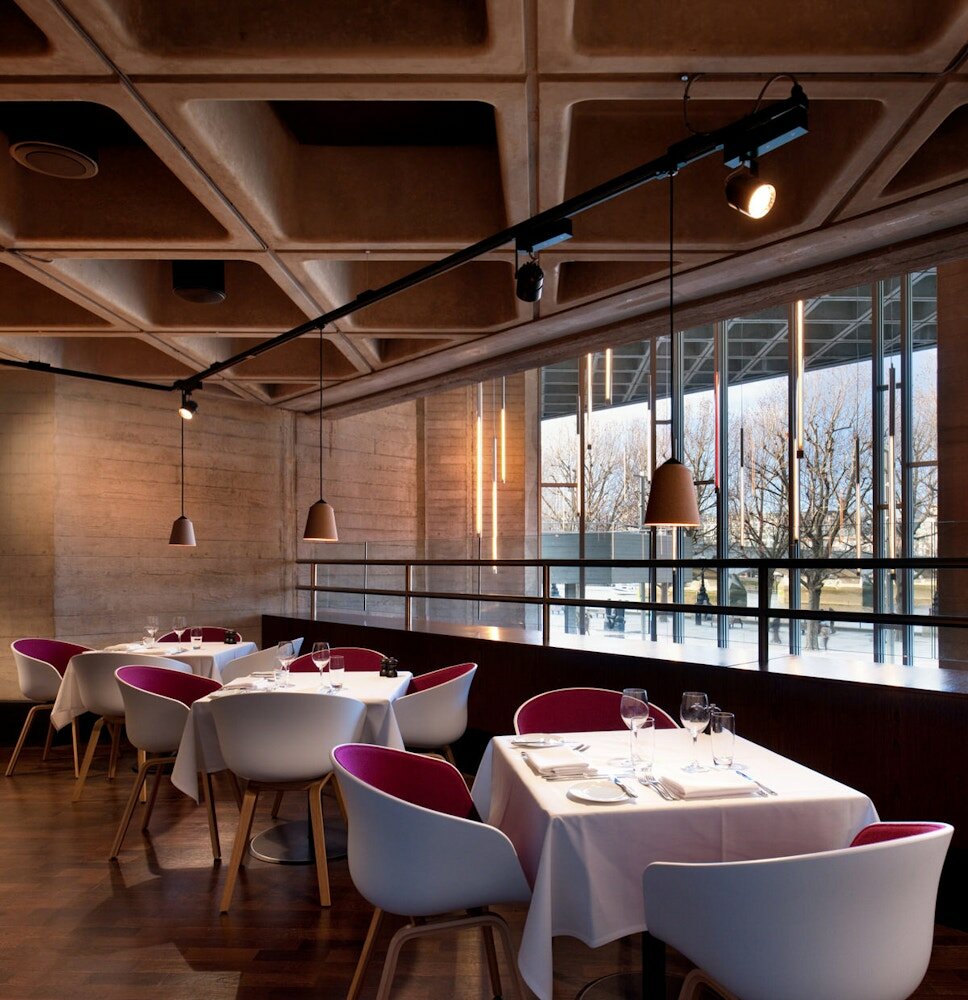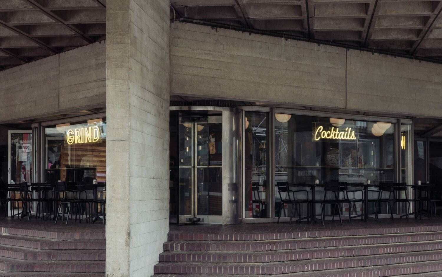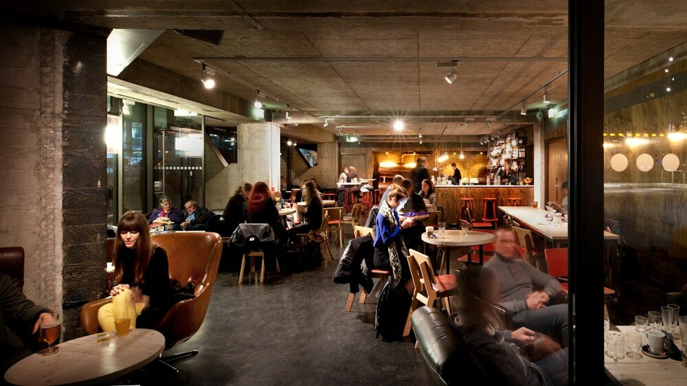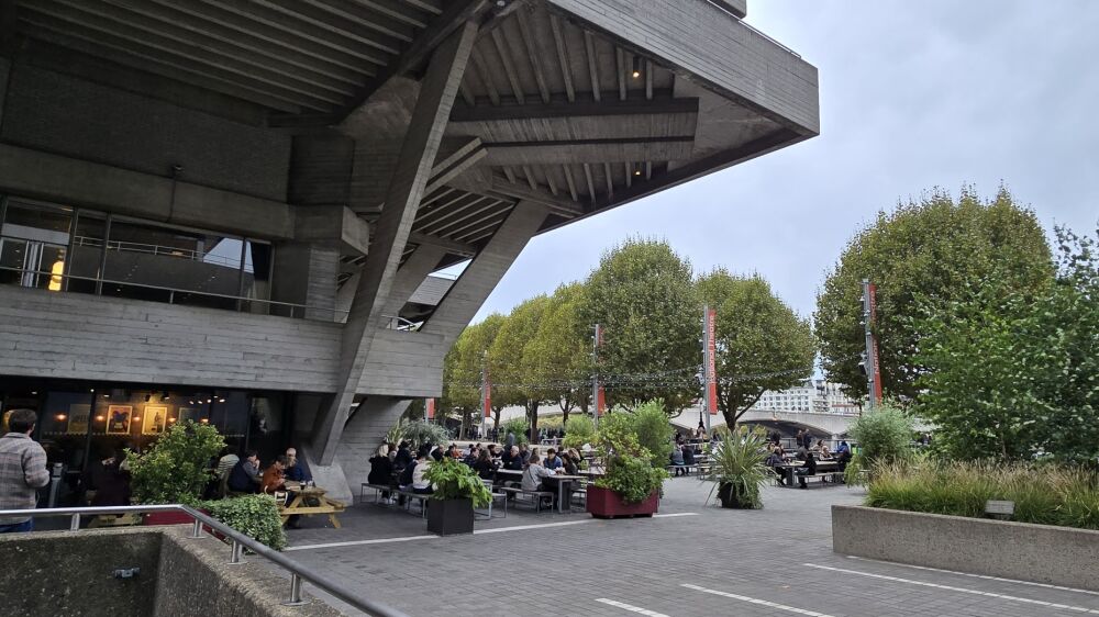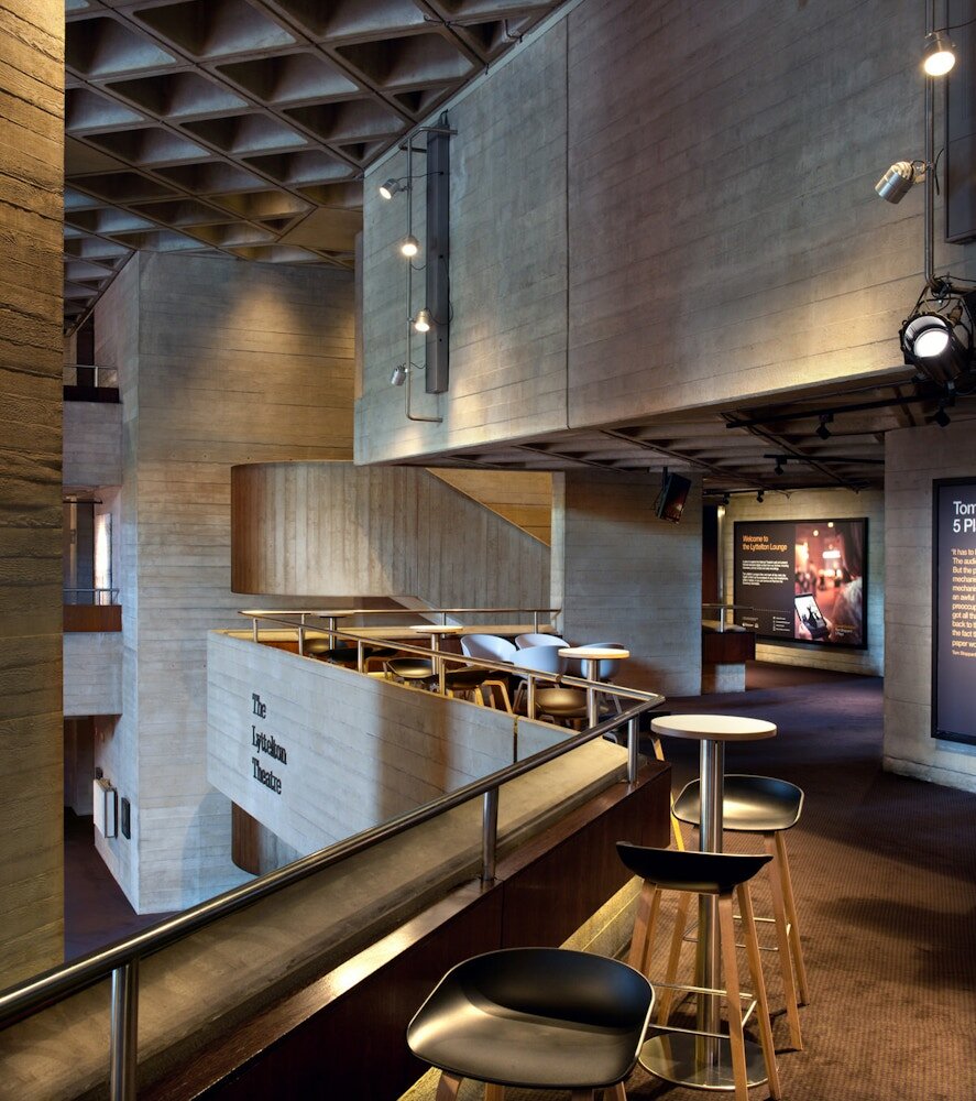 La transparence des façades du bâtiment a été considérablement accrue, et les foyers sont devenus plus accueillants grâce à des bars, restaurants, librairies, mobiliers et éclairages entièrement repensés. L’angle nord-est du NT — autrefois une cour de service tournée vers la rivière — a été ouvert au public grâce à la création d’un nouveau bar le Grind, avec une énorme terrasse, même en hiver.