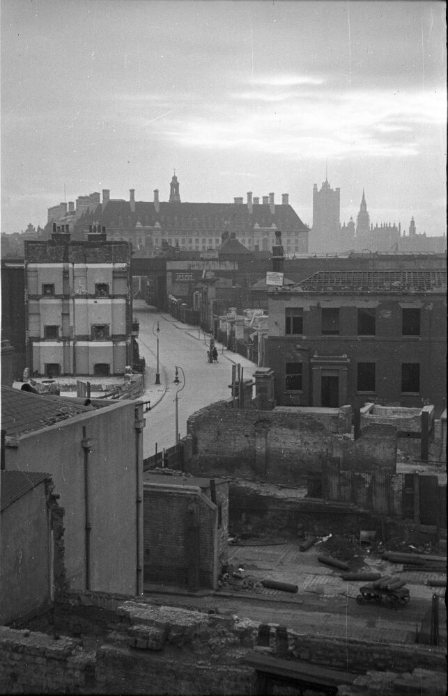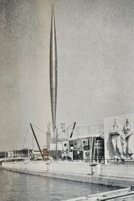Notons que la Shot Tower de la South Bank est une haute tour industrielle construite pour fabriquer des billes de plomb, appelées shot, destinées principalement à la fabrication de munitions (cartouches de fusils, chasse, etc.). Quand on prépare le Festival of Britain, la Shot Tower est l’un des rares bâtiments anciens qui a été conservé sur la rive sud quand tout le reste a été rasé pour construire tous les bâtiments du Festival. Les organisateurs décident de la conserver comme repère historique et de la transformer en tour de radar (eh oui !). La photo de droite ci-dessus est le témoin de ce vieux bâtiment maintenu au milieu de tous ces bâtiments modernes, et y voit bien un radar en son sommet. La Shot Tower est finalement détruite en 1962.