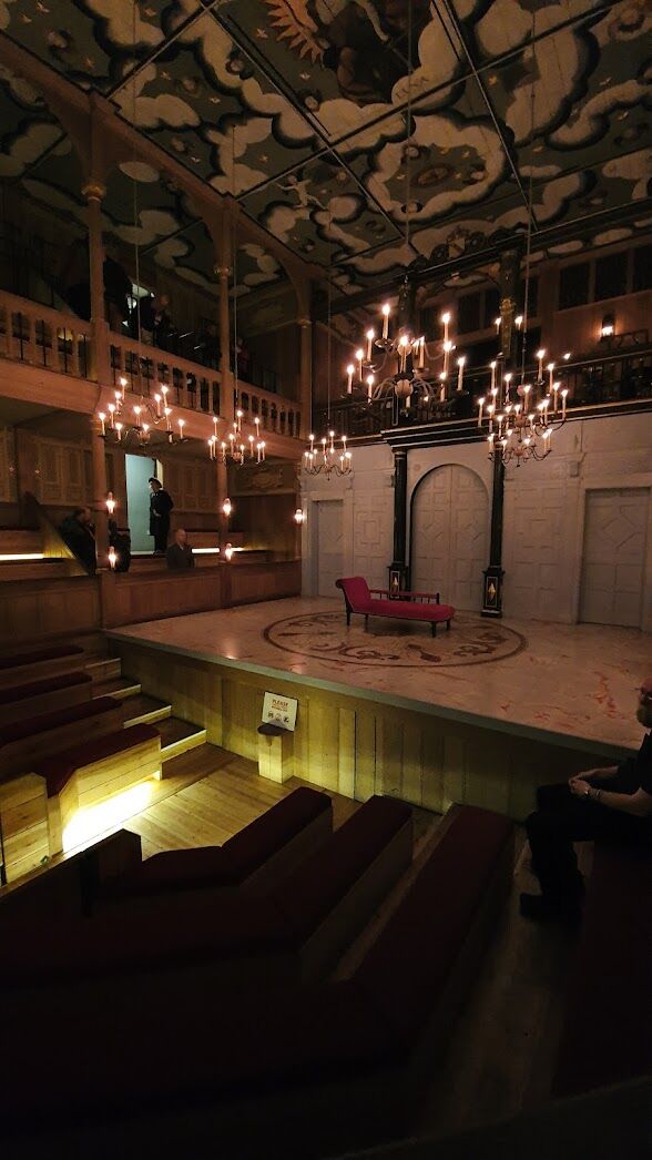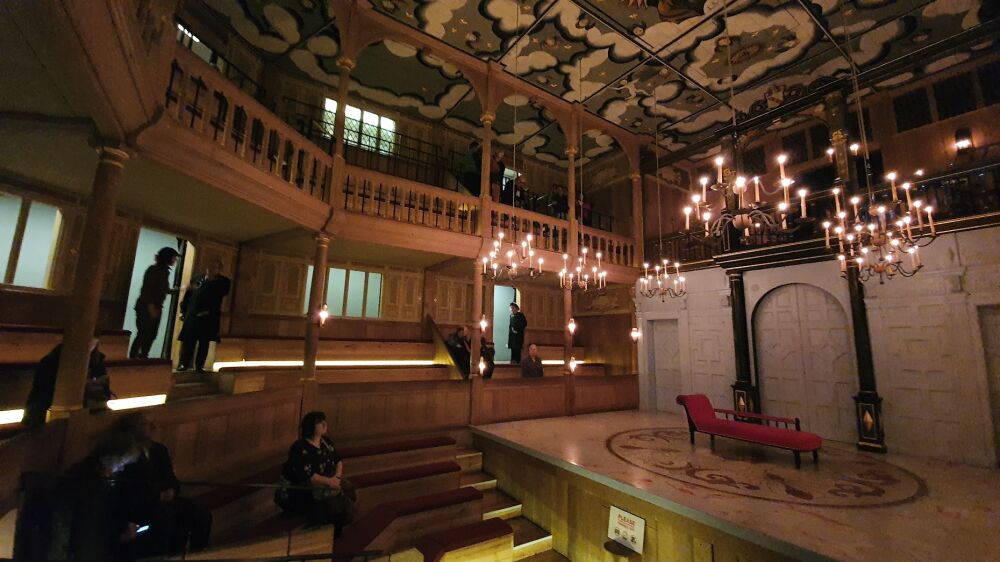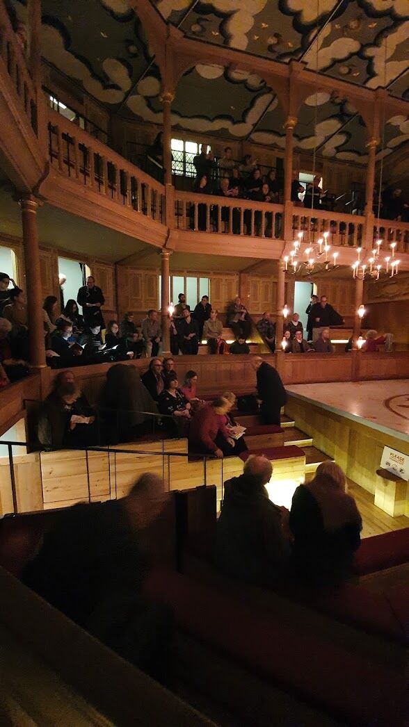Vu le succès du Globe, une deuxième salle va ouvrir: le Sam Wanamaker Playhouse. C’est un théâtre couvert, conçu comme le pendant intime du grand théâtre en plein air. Il a été imaginé dès la conception du Globe original par Sam Wanamaker lui-même, fondateur du projet, qui rêvait d’offrir à Londres les deux types de théâtre élisabéthain: l’un public et ouvert (le Globe), l’autre privé et couvert, typique des « indoor playhouses » du XVIIème siècle. Inauguré en janvier 2014, le théâtre porte le nom de Sam Wanamaker, mort en 1993, pour lui rendre hommage. Le Sam Wanamaker Playhouse s’inspire directement des plans de l’ancien Blackfriars Theatre (1608), que Shakespeare connaissait bien: une salle rectangulaire et close, galeries sur trois niveaux, une scène en bois richement décorée, éclairage à la chandelle, restitué ici avec de vraies bougies. A nouveau quelques souvenirs personnels…