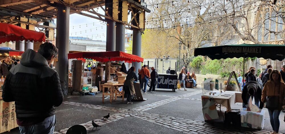Le Borough Market est l’un des plus anciens marchés de Londres, ses origines remontent au XIème siècle (il est attesté dès 1014 !). Il s’est toujours trouvé à l’entrée sud du London Bridge, point stratégique entre la City et le sud de l’Angleterre. Historiquement, il fournissait la capitale en fruits, légumes, viande et poisson venus du Kent et du Surrey. Le marché moderne, tel qu’on le connaît, s’est structuré au XIXème siècle sous les arches ferroviaires de Southwark, juste au pied des rails de la ligne London Bridge. Mais dans la seconde moitié du XXème siècle, il décline car les supermarchés et marchés de gros (comme celui de Covent Garden) le concurrencent et la zone de Southwark perd son dynamisme. À la fin des années 1980, le Borough Market est presque moribond – un vestige de l’ancien Londres marchand.