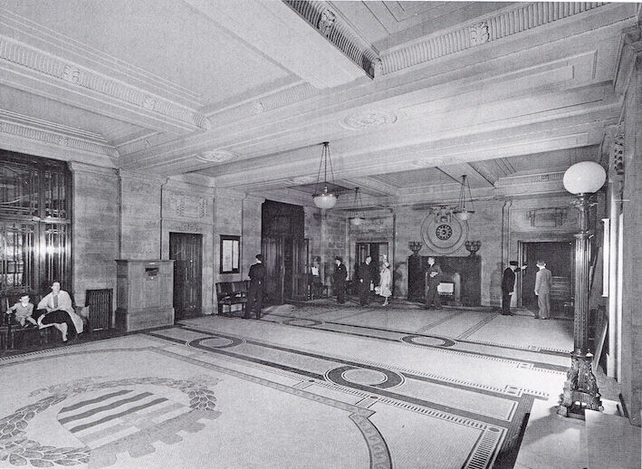 Le gigantesque bâtiment est inauguré en grande pompe en 1922 par le roi George V. L’architecte, Ralph Knott, a conçu un bâtiment monumental, symbolisant le pouvoir administratif de Londres dans un style néo-baroque édouardien, avec une imposante façade courbe, des colonnades et une coupole centrale. De magnifiques cours intérieures sont créées.