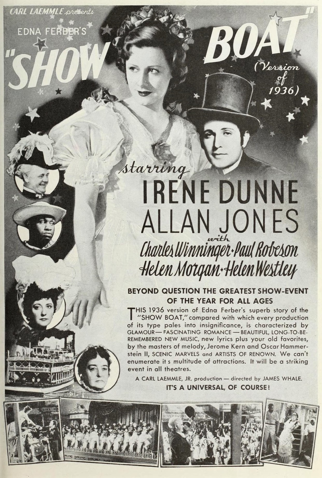 Comme nous l’avons vu, Show Boat () a été promotionné lors de la création de 1927 auprès du public américain avec en tête d’affiche Helen Morgan, une star blanche qui travaillait le plus souvent dans des boîtes de nuit ou des théâtres accompagnée seulement d’un piano.