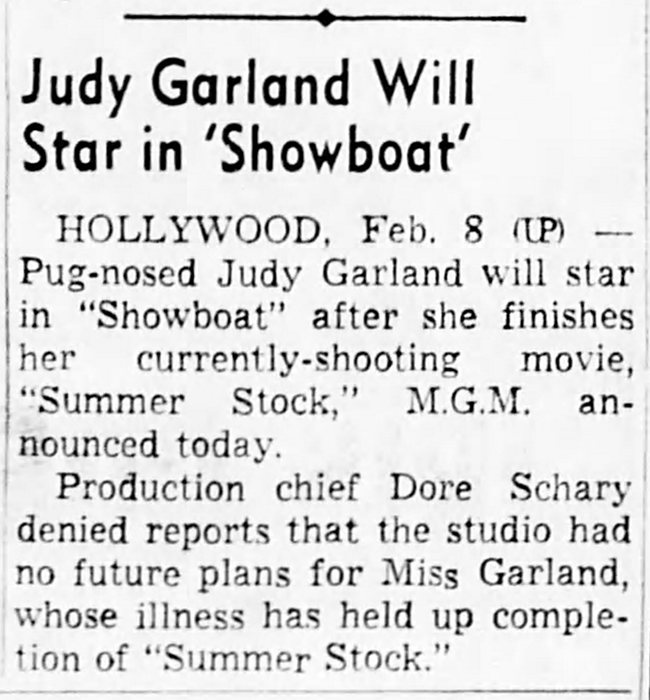 La MGM achète les droits d’adaptation du spectacle Show Boat () dès 1938, mais le projet va mettre 13 ans à voir le jour. Il est d’abord question d’en faire le prochain film du couple vedette Jeanette McDonald et Nelson Eddy, mais le producteur Arthur Freed doit changer son fusil d’épaule. Il envisage au début des années ‘40 de confier le rôle de Magnolia et de Julie à ses deux étoiles montantes, Kathryn Grayson et Judy Garland, mais de nouveaux problèmes vont retarder le projet tout au long de la décennie.