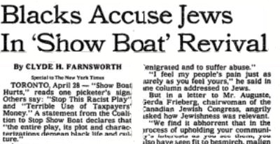 Le Show Boat () de 1994 a été confronté tout au long de sa création à des protestations publiques sans précédent et terriblement intenses. La controverse s’est largement concentrée sur les représentations à Toronto en octobre 1993 qui étaient les pre-Broadway Tryout du show. La «Coalition to Stop Show Boat», un groupe composé principalement de militants afro-caribéens, s’est battue dans les médias contre cette production et a organisé des manifestations lors de la soirée d’ouverture. L’érudit et activiste M. Nourbese Philips, dans son court livre Showing Grit: Showboating Above the 44e Parallel (1993) consacré à Robeson, a expliqué les protestations et a tenté de prendre en compte toute l’histoire de Show Boat (). Philips s’est opposé à toute reprise du spectacle, en toutes circonstances, estimant que Show Boat () était dangereusement daté.
