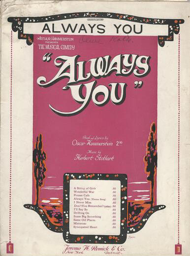 Le premier book-musical de la décennie Always You était de bon augure, car c’était la première fois qu’Oscar Hammerstein II était représenté à Broadway en tant que parolier et librettiste. (Ses vrais débuts à Broadway ont eu lieu en 1917, lorsqu’il a écrit les paroles de Make Yourself at Home pour le musical Furs and Frills).