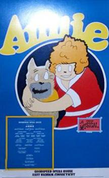 Dernière: 12 February 1983Mise en scène : Peter Walker • Chorégraphie : Producteur : Star(s) : Avec: Ursula Smith (Miss Hannigan), Charles West (Oliver War bucks), Peter Honri, Lorrain Grey, Neil Fitzwilliam, Petra Siniawski.Commentaires : This production has been on a UK tour and had played Bristol Hippodrome instead of a pantomime in 1981/2