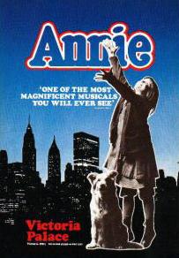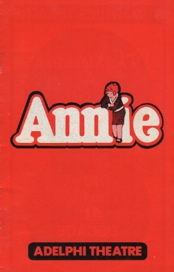 Dernière: 28 November 1981Mise en scène : Martin Charnin • Chorégraphie : Peter Gennaro • Producteur : Star(s) : Avec: Andrea McArdle (Annie), Sheila Hancock (Miss Hannigan), Stratford Johns (Oliver War bucks), Judith Paris (Grace Farrell), Kenneth Nelson (Rooster), Clovissa Newcombe (Lily), Damon Sanders (President Roosevelt)Commentaires : The musical premiered in the West End at the Victoria Palace Theatre on 3 May 1978. Though Andrea McArdle played the title role for 40 performances, British 12-year-old Ann Marie Gwatkin was also cast in the title role and appeared on the Original London cast recording. She alternated with Christine Hyland and five other Annies were cast at this point: Anne O'Rourke, Tracy Taylor, Jacinta Whyte, Helen Thorne and Gillian White, who were all to play the role over the next three years. Miss Hannigan was originally played by Sheila Hancock, and later by Maria Charles and Stella Moray; Daddy Warbucks was played by Stratford Johns and later by Charles West, with Deborah Clarke playing Pepper. Annie closed on 28 November 1981, after 1485 performances.