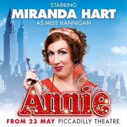 Dernière: 18 February 2018Mise en scène : Nikolai Foster • Chorégraphie : Nick Winston • Producteur : Star(s) : Avec: Miranda Hart (Miss Hannigan)