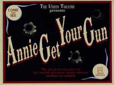 Dernière: 09 February 2008Mise en scène : Thom Southerland • Chorégraphie : Georgina O'Brien • Producteur : Star(s) : Avec: Vanessa Barmby (Annie Oakley), Matthew Eames (Frank Butler), William Ludwig, Anna McAuley, Tom Walker, Claire TrussonCommentaires : An extremely cut-down production, this actually used hand-puppets in place of the children in the show, and supplemented the two piano accompaniment with a series of strange sounds including spoons! However, it was warmly received for the great charm of its principal performers..