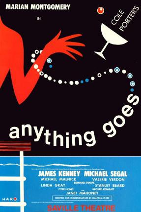 Dernière: 18 November 1969Mise en scène : Michael Clare • Chorégraphie : Michael Clare • Producteur : Star(s) : Commentaires longs: Avec Marian Montgomery (Reno Sweeney), James Kenney (Billy Crocker), Michael Segal (Moonface Martin), Michael Malnick (Sir Evelyn Oakleigh), Valerie Verdon (Hope Harcourt), Janet Mahoney (Bonnie), Linda Gray (Mrs. Wadsworth T. Harcourt), Stanley Beard (Bishop, Captain), Bernard Sharpe (Reporter, Horatio), Peter Honri (Elisha J. Whitney), Michael Rowlett (Purser), Olwen Hughes (Mary Anne), Anne Sparrow (Melanie), Alan Stone (Steward), David Wheldon Williams (Ching), Ross Huntly (Ling), with Chris Melville, Georgina Pearce, Douglas Nottage, Vivian Stokes, April Ashton, Jan Cave, Jacquie Toye, Peter Loury, David Thornton, Michael Bevan, and Allard Tobin.