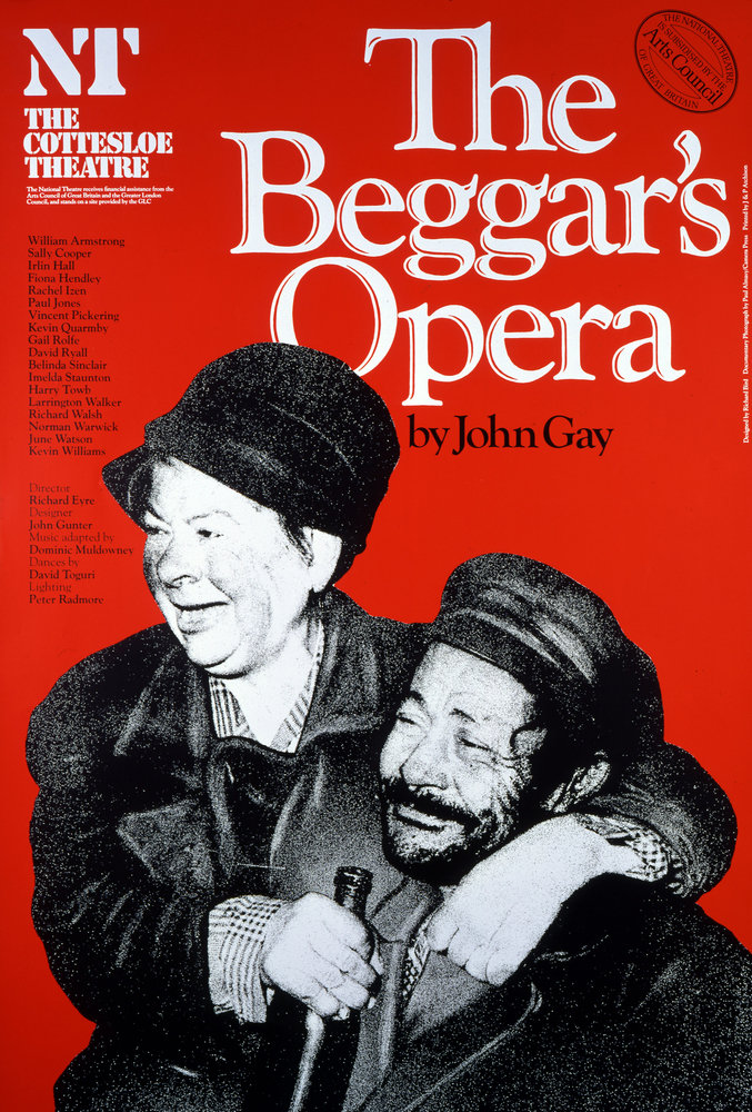 Dernière: InconnuMise en scène : Peter Wood • Chorégraphie : Pauline Grant • Producteur : Star(s) : Avec: Layne-Smith Donald (Ben Budge), Cooper Ann (Betty Doxy), Rivers Malcolm (Crook-Fingered Jack), Collier Patience (Diana Trapes), Conolly Patricia (Dolly Trull), Angadi Darien (Drawer), Williams Michael (Filch), Honeycombe Gordon (Harry Paddington), Cobner John (Jailer), Rippon Michael (Jemmy Twitcher), Kilgarriff Patricia (Jenny Diver), Church Tony (Lockit), McKenna Virginia (Lucy Lockit), Godfrey Derek (MacHeath), Bisset Donald (Marine Officer), Morgan Gareth (Matt o' the Mint), Alcorn Joan (Molly Brazen), Coffey Denise (Mrs Coaxer), Hare Doris (Mrs Peachum), Griffiths Valerie (Mrs Slammekin), Spriggs Elizabeth (Mrs Vixen), Angadi Darien (Nimming Ned), Radd Ronald (Peachum), Morgan Gareth (Poet), Tutin Dorothy (Polly Peachum), Cobner John (Robin of Bagshot), Bamber Tim (Slippery Sam), Webster Mary (Suky Tawdry), Bamber Peter (Tom Tipple), Arthure Richard (Unnamed parts), Ashton Barry (Unnamed parts), Gardnier Kenneth (Unnamed parts), Howell Dane (Unnamed parts), Walker April (Unnamed parts), Harwood John (Wat Dreary)Commentaires : Un spectacle de la RSC.
