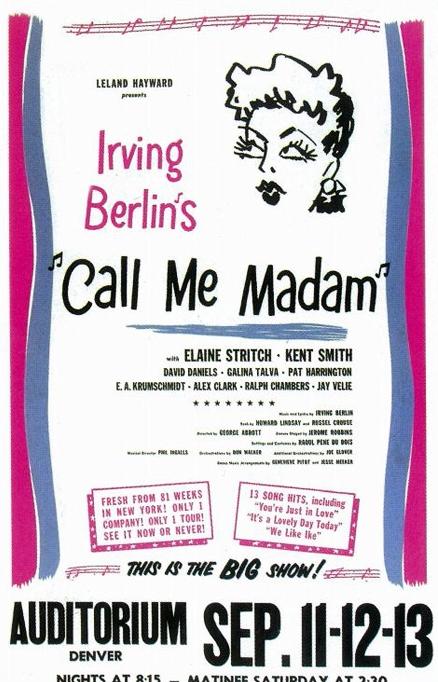 In 1949, Merman and her family were vacationing at the Hotel Colorado in Glenwood Springs with Howard Lindsay and his wife Dorothy Stickney. Watching Merman poolside while reading a magazine article about Mesta, Lindsay was struck by how typically "American" she was and immediately envisioned her portraying a colorful character similar to the newly appointed ambassador. When he proposed the idea to Merman, who had little interest in either society or political news, she responded, "Who's Perle Mesta?"