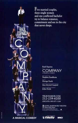 Company was among the first musicals to deal with adult problems through its music. As Sondheim put it, "Company does deal with upper middle-class people with upper middle-class problems. Broadway theater has been for many years supported by those people. They really want to escape, and here we're saying we'll bring it right back in their faces ... what they came to a musical to avoid, they suddenly find facing them on the stage."