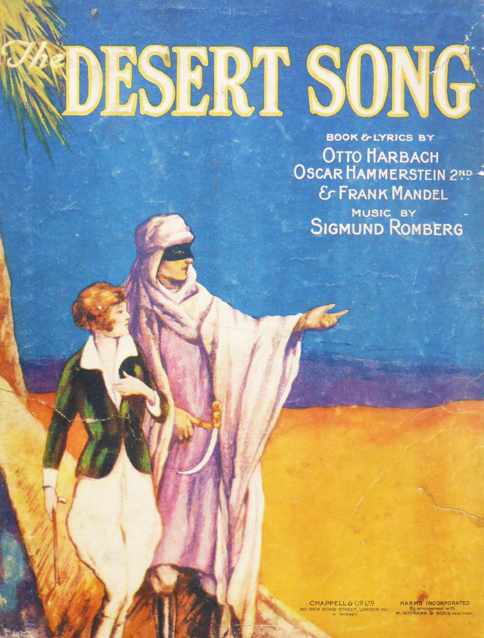 Lorsque l’opérette The Desert Song de Sigmund Romberg a ouvert ses portes à Broadway en 1926, il s’agissait en fait d’une pièce contemporaine très vaguement inspirée d'événements politiques en Afrique du Nord. Le musical est centrée sur le mystérieux Red Shadow, un soi-disant Robin des Bois du Maroc, qui dirige les tribus rebelles du Riff contre les Français. Mais le robuste Red Shadow est en réalité Pierre Birabeau, le fils du gouverneur général français Birabeau. Pour cacher son identité, Pierre pose comme un doux et doux introverti qui aime lire des livres…
