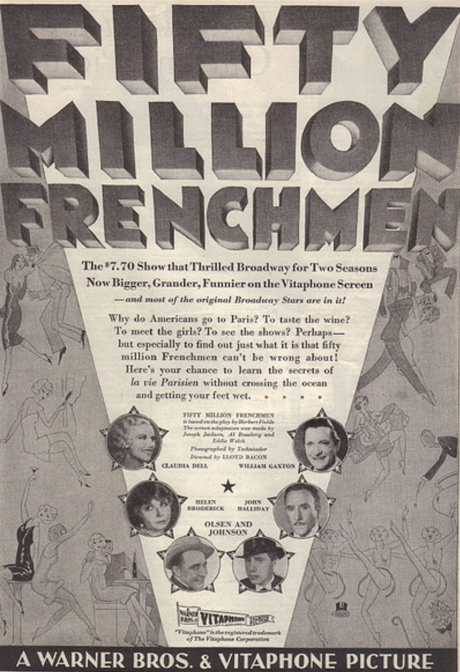 Fifty Million Frenchmen est un musical avec un livret d'Herbert Fields et une musique et des paroles de Cole Porter. Il a ouvert ses portes à Broadway en 1929 et a été un grand succès. Il a été adapté pour un film deux ans plus tard.