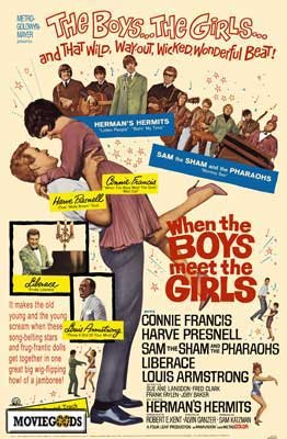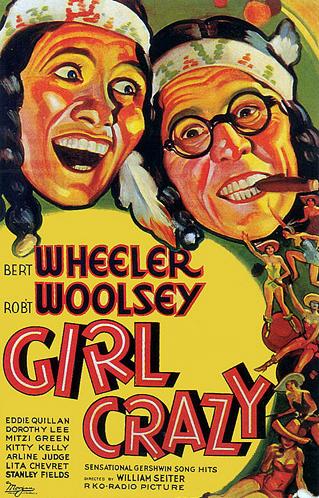 Film adaptations: The 1932 RKO Radio Pictures production was very unlike the stage play except for its score. The film was tailored for the comic talents of Wheeler & Woolsey, a then-popular comedy team. In 1943, Metro-Goldwyn-Mayer produced a lavish version starring Mickey Rooney and Judy Garland. In 1965, MGM once again made the musical into a film, for Connie Francis. Unlike the previous two versions, the title was changed to When the Boys Meet the Girls. It co-starred Herman's Hermits, Sam the Sham and the Pharaohs, Louis Armstrong, and Liberace. A number of Gershwin songs were retained, including "Embraceable You", "Bidin' My Time", "But Not for Me", "Treat Me Rough", and "I Got Rhythm".