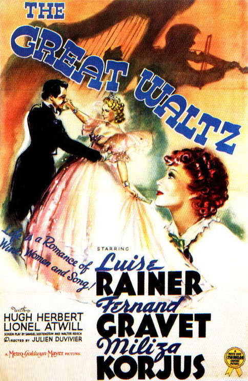 Dernière: InconnuMise en scène : Julien Duvivier • Chorégraphie : Producteur : Star(s) : Avec: Luise Rainer (Poldi Vogelhuber), Fernand Gravet (Johann Strauss II), Miliza Korjus (Carla Donner), Hugh Herbert (Hofbauer), Lionel Atwill (Count Hohenfried), Curt Bois (Kienzl), Al Shean (Cellist), Minna Gombell (Mrs. Hofbauer), Alma Kruger (Mrs. Strauss), Greta Meyer (Mrs. Vogelhuber), Bert Roach(Vogelhuber), Henry Hull (Franz Joseph I of Austria), Sig Rumann (Wertheimer), George Houston (Schiller), Herman Bing (Dommayer), Christian Rub (Coachman), Frank Mayo (Ship's Officer (uncredited)), Larry Steers (Man in Uniform (uncredited))Commentaires : According to MGM records, the film earned $918,000 in the US and Canada, and $1,504,000 elsewhere, resulting in a loss of $724,000.