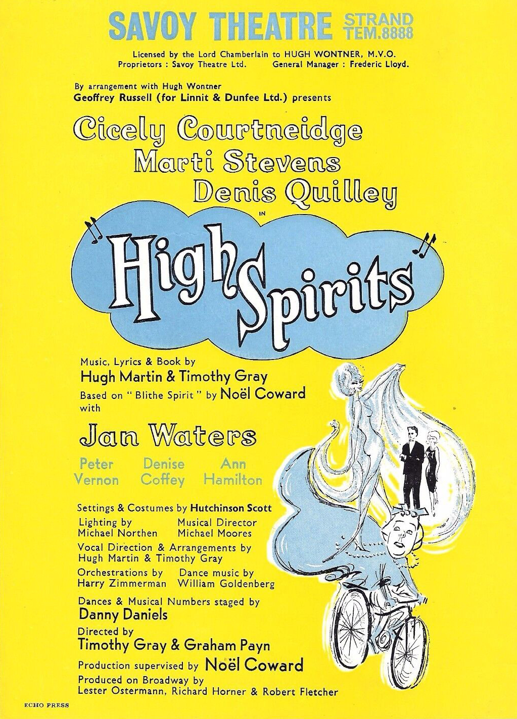 Dernière: 23 January 1965Mise en scène : Noël Coward • Hugh Martin • Timothy Gray • Chorégraphie : Producteur : Star(s) : Avec: Cicely Courtneidge (Madam Arcati), Denis Quilley (Charles Condomine), Jan Waters (Ruth), Marti Stevens (Elvira)