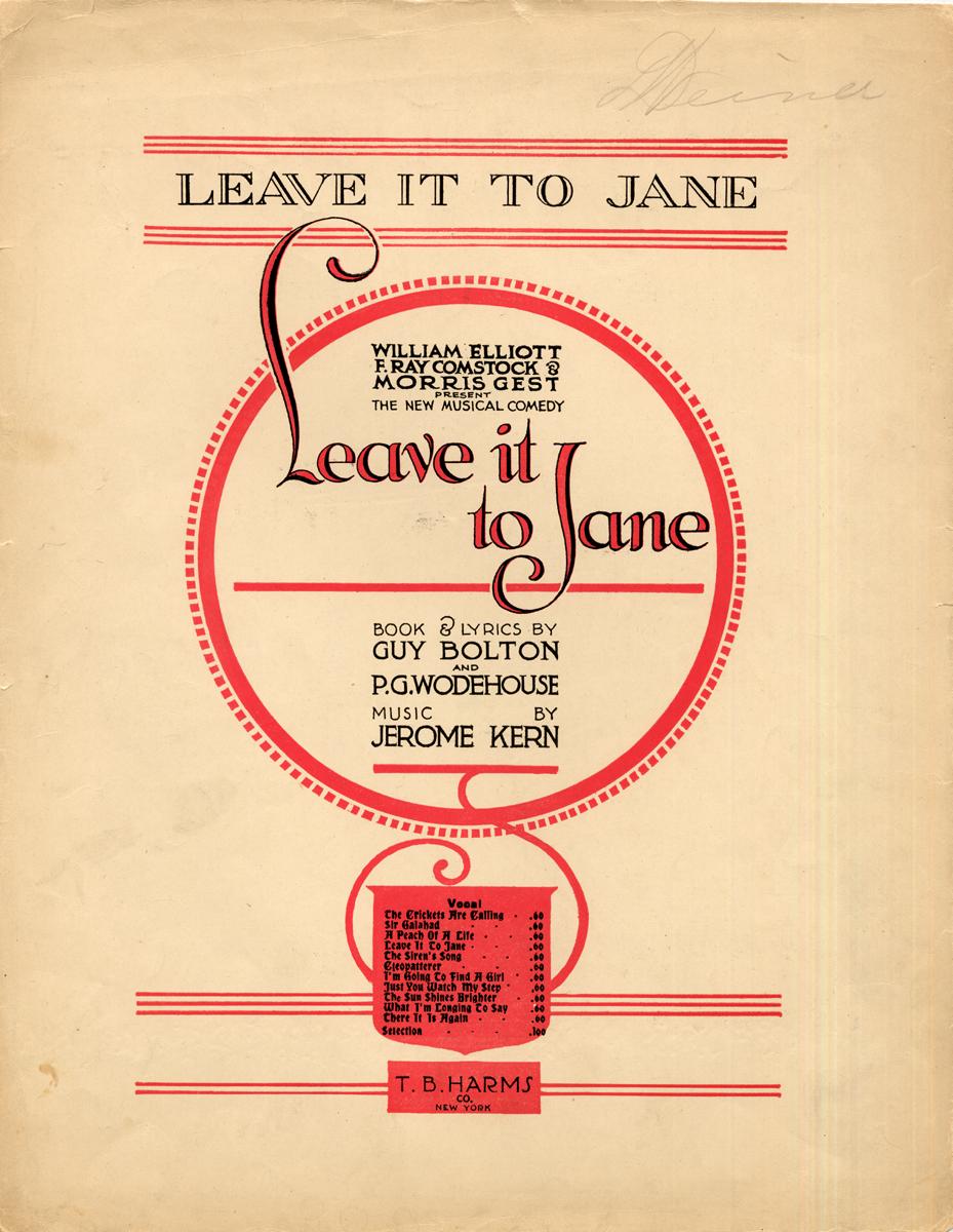 "Leave It to Jane" était la dernière création musicale en date de l'équipe du Princess Theatre: Jerome Kern, le librettiste Guy Bolton, et le parolier et co-librettiste P. G. Wodehouse. La seule raison pour laquelle la production a ouvert au Longacre Theatre au lieu du Princess Theatre est que le musical précédent de l’équipe, "Oh, Boy!", triomphait toujours au Princess Theatre. "Leave It to Jane" a du être créé ailleurs et a connu une série de 167 représentations avant de se lancer dans un US Tour qui comprenait des retouches mineures à la partition : « The Siren’s Song » a été déplacé du deuxième au premier acte, et le duo de la fin du premier acte « What I’m Longing to Say ». a été supprimé et remplacé par « The Crickets Are Calling ».