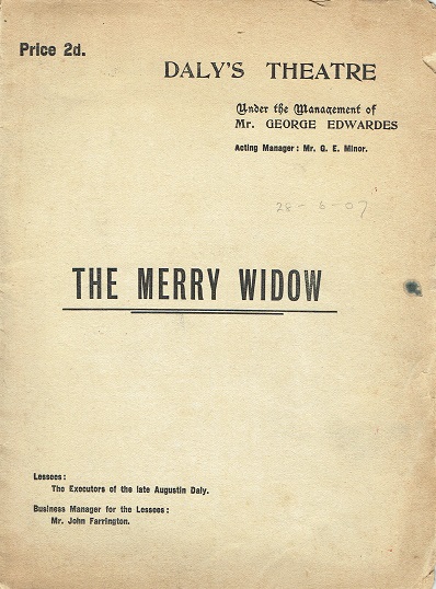 Edwardes a commandé au parolier Adrian Ross et au librettiste Edward Morton la première version anglaise de "The Merry Widow" (1907). Quand le dialogue de Morton s’est avéré décevant, le prolifique Basil Hood a été invité à réécrire tout le script, mais il n’a été crédité que des années plus tard, soi-disant par respect pour les sentiments de Morton. La production du West End est inaugurée au Daly’s Theatre le 8 juin 1907.