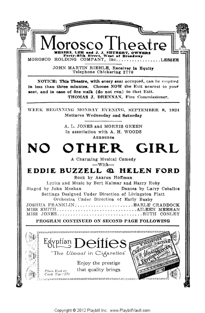 Théâtre: Morosco Theatre (Broadway - Etats-Unis) Durée : 1 mois 2 semaines Nombre : Première Preview : 13 August 1924