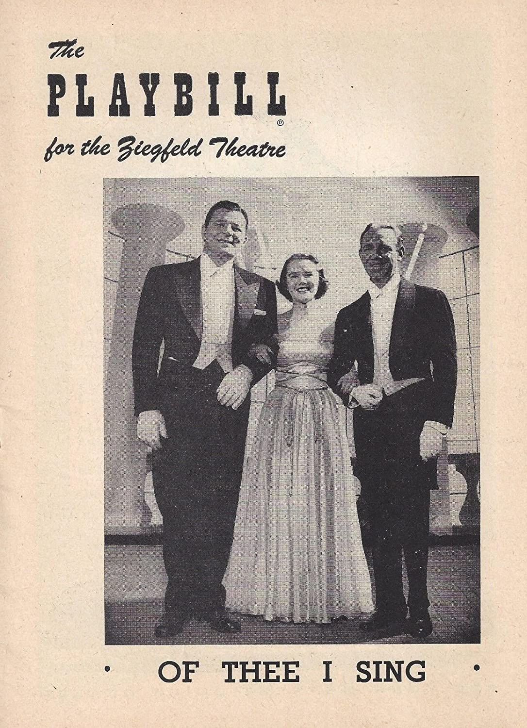Dernière: 05 June 1952Mise en scène : George S. Kaufman • Chorégraphie : Producteur : Star(s) : Avec: Jack Carson (John P. Wintergreen), Paul Hartman (Alexander Throttlebottom), Florenz Ames (The French Ambassador), Arlene Anderson (Showgirl), Ken AyersVicki Barrett (Dancer), Jean Bartel (Beauty Contestant), Betty Buday (Dancer), Claudia Campbell (Singer), Louise Carlyle (Chambermaid), Norman Clayton (Singer), Georgine Darcy (Dancer), Crandall Diehl (Dancer), Gregg Evans (Showgirl), Charlotte Foley (Showgirl), Donald Foster (Senator Robert E. Lyons), Howard Freeman (Senator Carver Jones), Warren Galjour (Singer), J. Corkey Geil (Dancer), Skeet Guenther (Dancer), Jay Harwick (Singer), Keith Kaldenberg (Singer), Joe Kerrigan (Singer), Michael King (Flunkie), William Krach (Flunkie), Lenore Lonergan (Diana Devereaux), Jonathan Lucas (Sam Jenkins), Joan Mann (Emily Benson), Mort Marshall (Announcer), James McCracken (Singer), Al McGranary (Chief Flunkey), Peggy Merber (Dancer), Betty Oakes (Mary Turner), J. Pat O'Malley (Francis X. Gilhooley), Bob Oran (Yusef Yussevitch), Helen Rice (Singer), Dorothy Richards (Showgirl), Jeanne Schlegel (Singer), Frank Seabolt (Dancer), Robert F. Simon (Louis Lippman), Siri (Showgirl), Loring Smith (Matthew Arnold Fulton), Joanne Spiller (Singer), Pat Stanley (Dancer), Abe Stein (Vladimir Vidovitch), Bob Tucker (Dancer), Jeanne Tyler (Showgirl), Gloria Van Dorpe (Singer), Charlotte Van Lein (Showgirl), Larry Weber (Singer), Tom Wells (Attaché), Jack Whiting (The Chief Justice), Parker Wilson (A Sightseer)