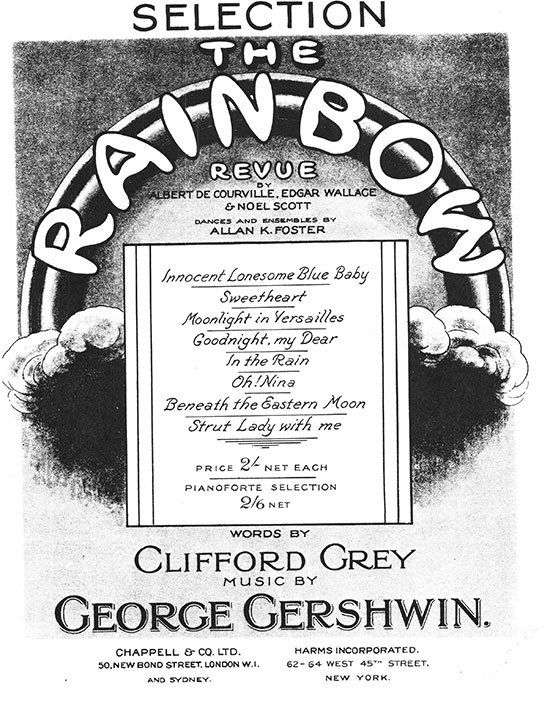 Gershwin et Grey en créèrent de nombreuses autres - de qualité variable - mais THE RAINBOW REVUE, bien qu’ayant connu du succès à Londres, n’a jamais reçu de production américaine.