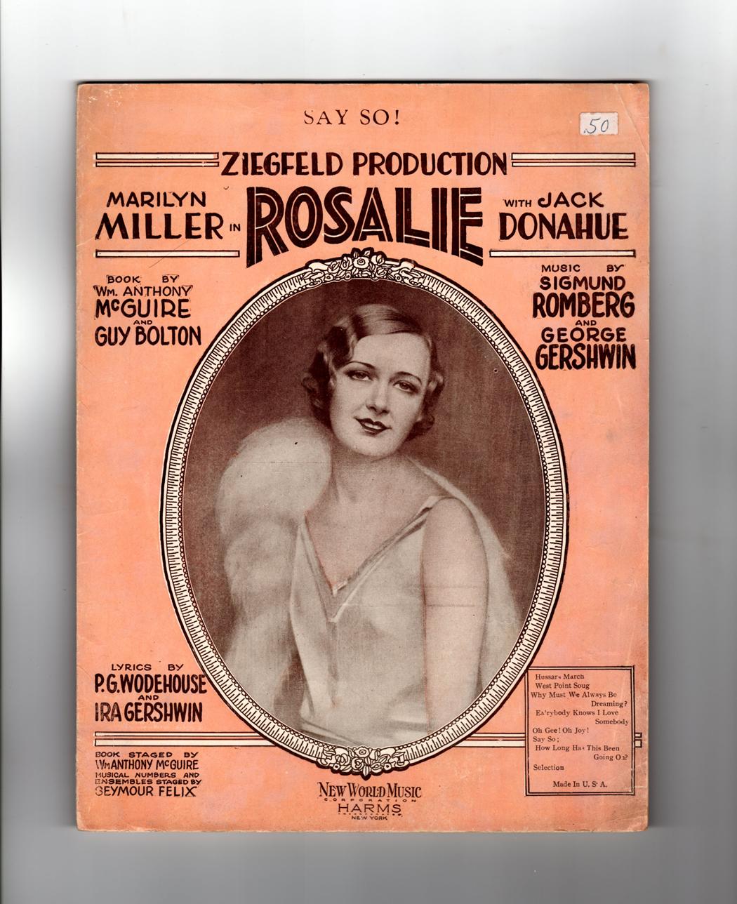 En 1930, la MGM a engagé Wodehouse pour adapter Rosalie au cinéma pour le réalisateur Marion Davies, mais le projet est finalement abandonné, en partie à cause de l’intérêt déclinant pour les musicals, mais aussi peut-être à cause de l’indifférence de Davies pour l’œuvre. En 1936, après que le retour des films musicaux à la mode, le studio a de nouveau souscrit aux services de Wodehouse pour préparer une adaptation cinématographique. Le premier auteur, William McGuire, maintenant producteur du film, finira par réécrire lui-même le scénario. La MGM a commandé une nouvelle partition à Cole Porter, ce qui semble totalement inexplicable: mettre des chansons de Gershwin à la poubelle!