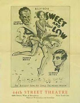 "Sweet and Low" est une revue musicale produite par Billy Rose et mettant en vedette James Barton, Fanny Brice, George Jessel et Arthur Treacher. Il présente des sketches de David Freedman et des chansons de divers compositeurs et paroliers.
