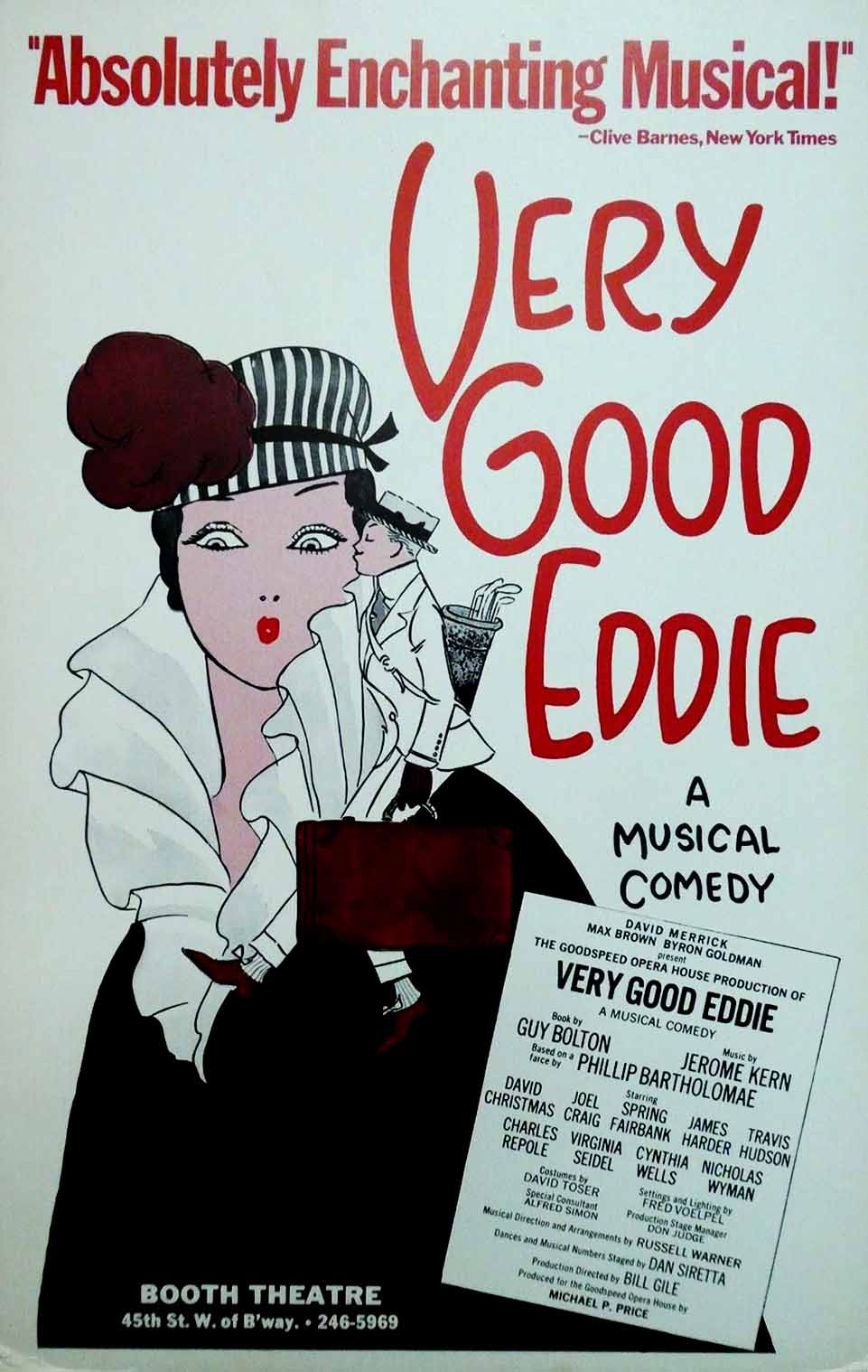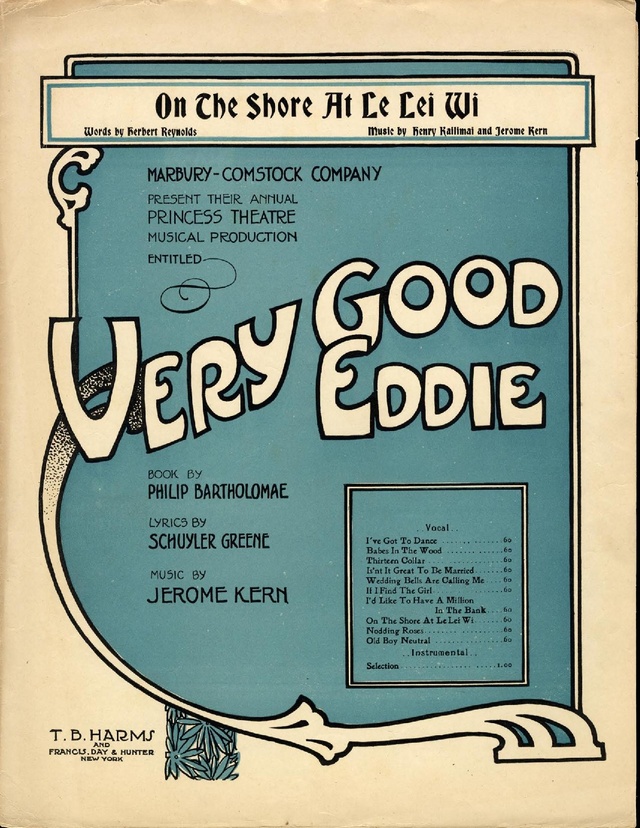 Cela a été suivi par un succès encore plus grand en 1917, "Oh, Boy!" et plusieurs autres, tous avec des décors américains modernes et des changements de scène simples (un seul décor pour chaque acte) pour mieux convenir au petit théâtre, évitant les traditions d’opérette qui fourmiliaient de lieux et de paysages élaborés. Dans "Very Good Eddie", les invités ont des noms comme Gay Anne Giddy, Fullern A. Goat, Tayleurs Dummee et Always Innit, et le professeur de chant a un élève appelé "Lily Pond" (une allusion probable au changement de nom d’une ville dans le Maryland de Lily Pond à Lilypons en l’honneur de la soprano d’opéra Lily Pons).